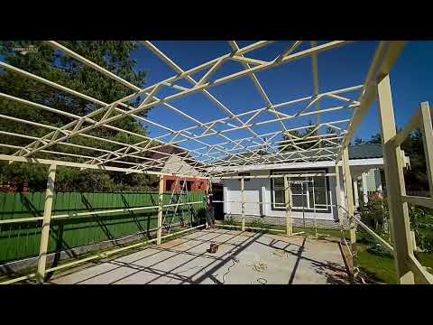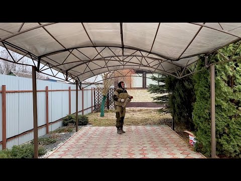 Заменили старый навес для автомобилей из профнастила на новый из поликарбоната