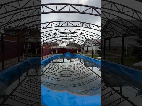 Собрали навес для дачи из металла с кровлей из металочерепицы