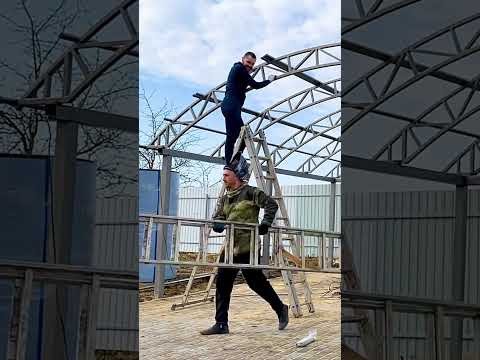 Монтаж навеса из поликарбоната для двух автомобилей на объекте нашего заказчика