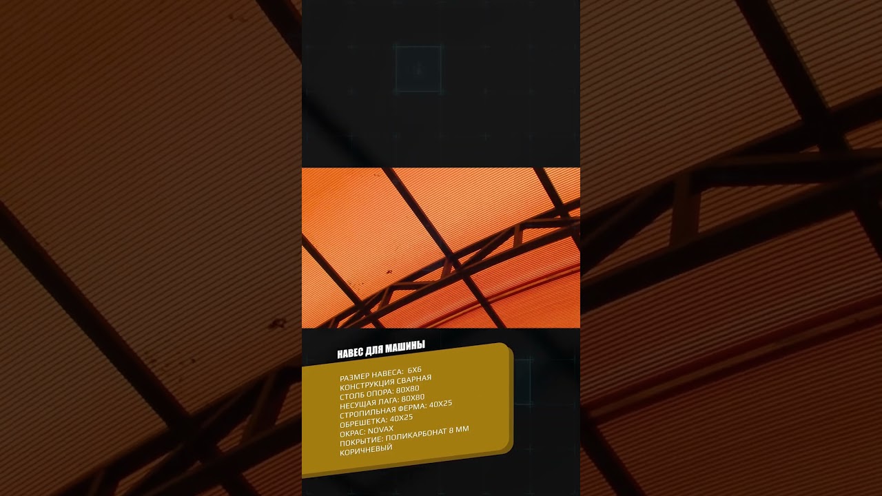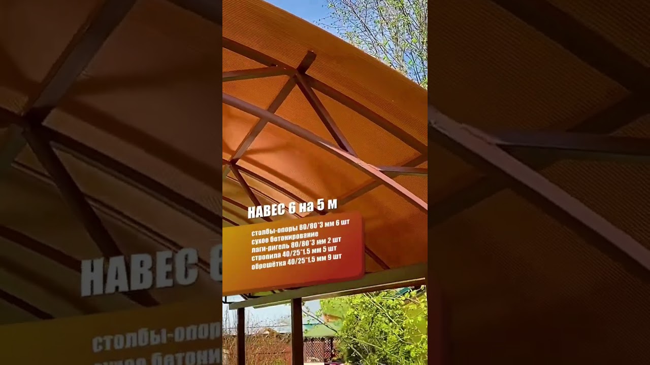 Навес из поликарбоната на две машины 6х6 | «Спецкаркас» - изготовление, доставка и монтаж навесов